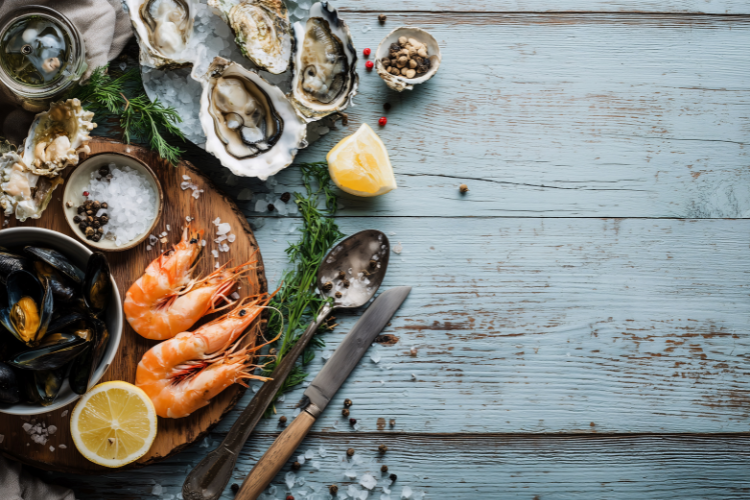 - les coquillages et crustacés tels que les huîtres, les palourdes, les crevettes grises ou le tourteau.